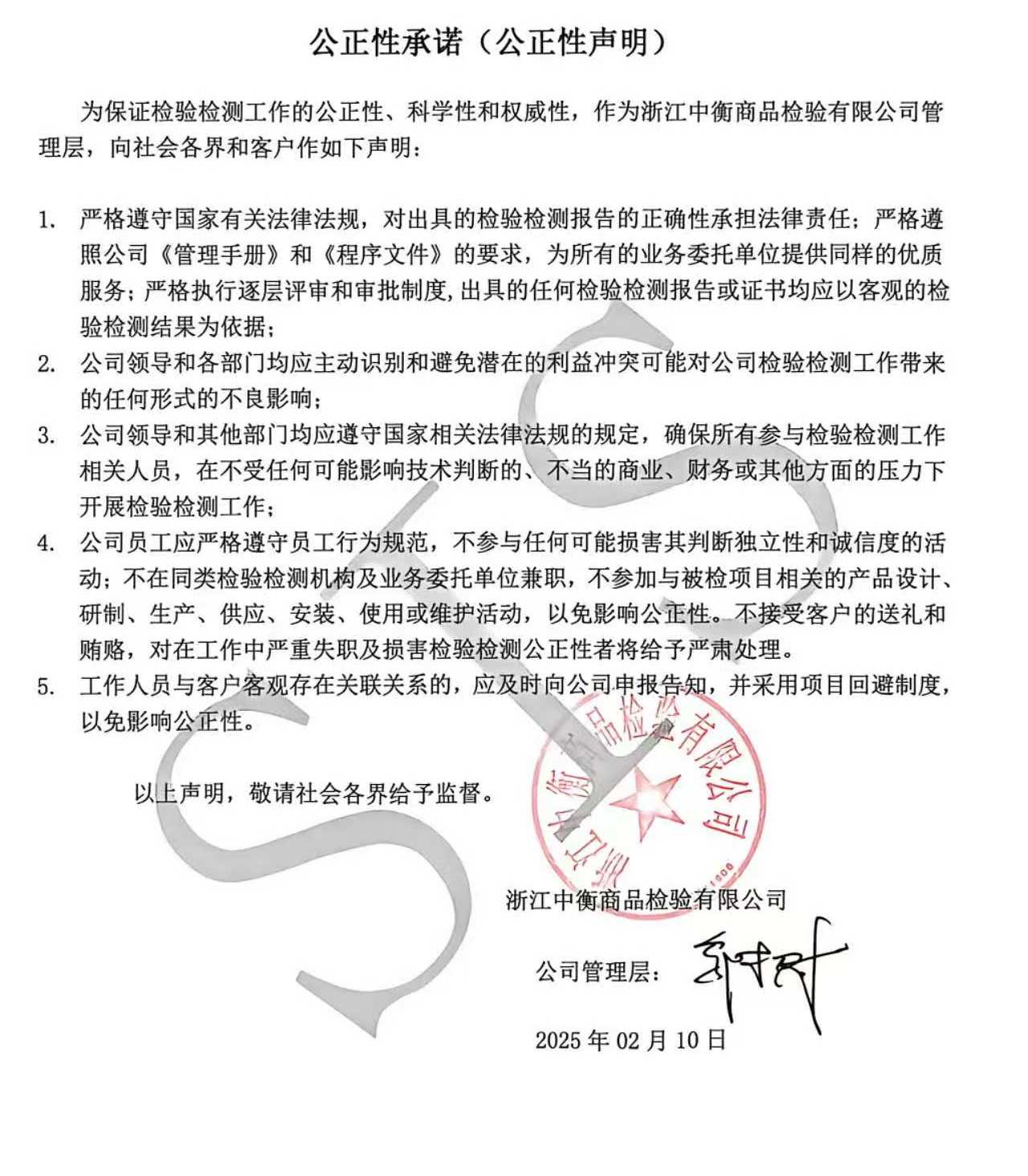 公正性承诺